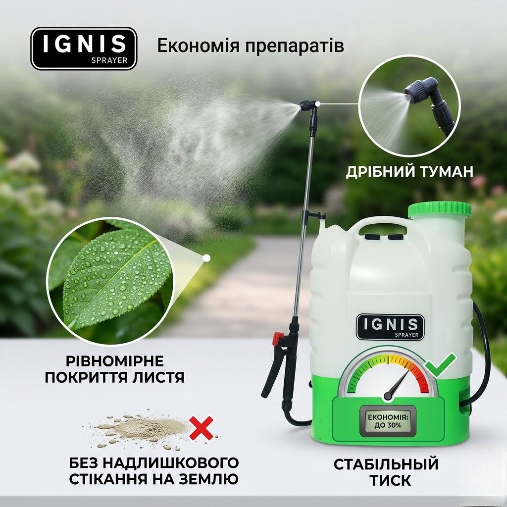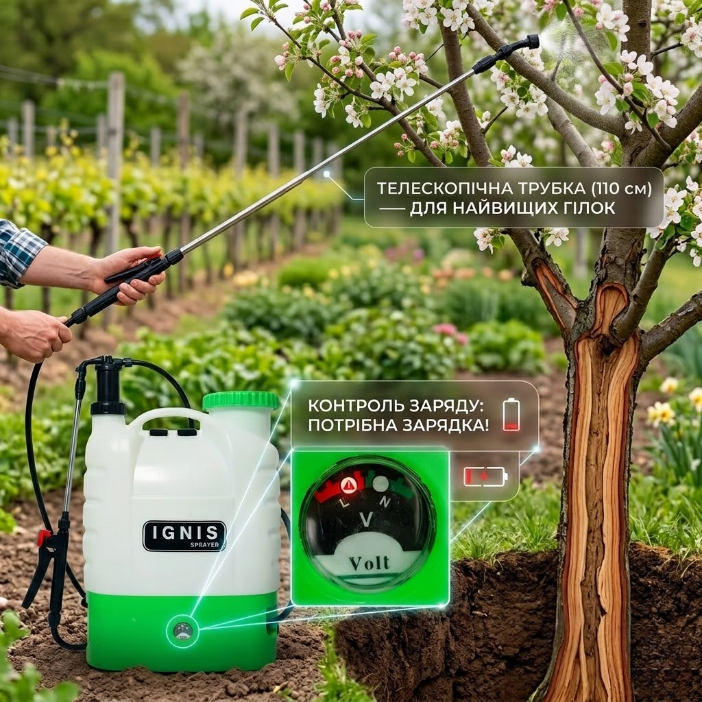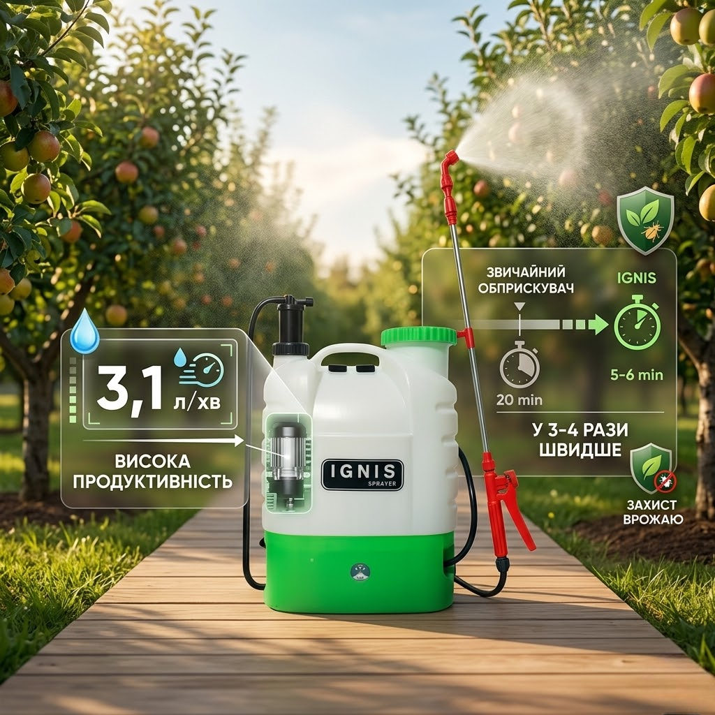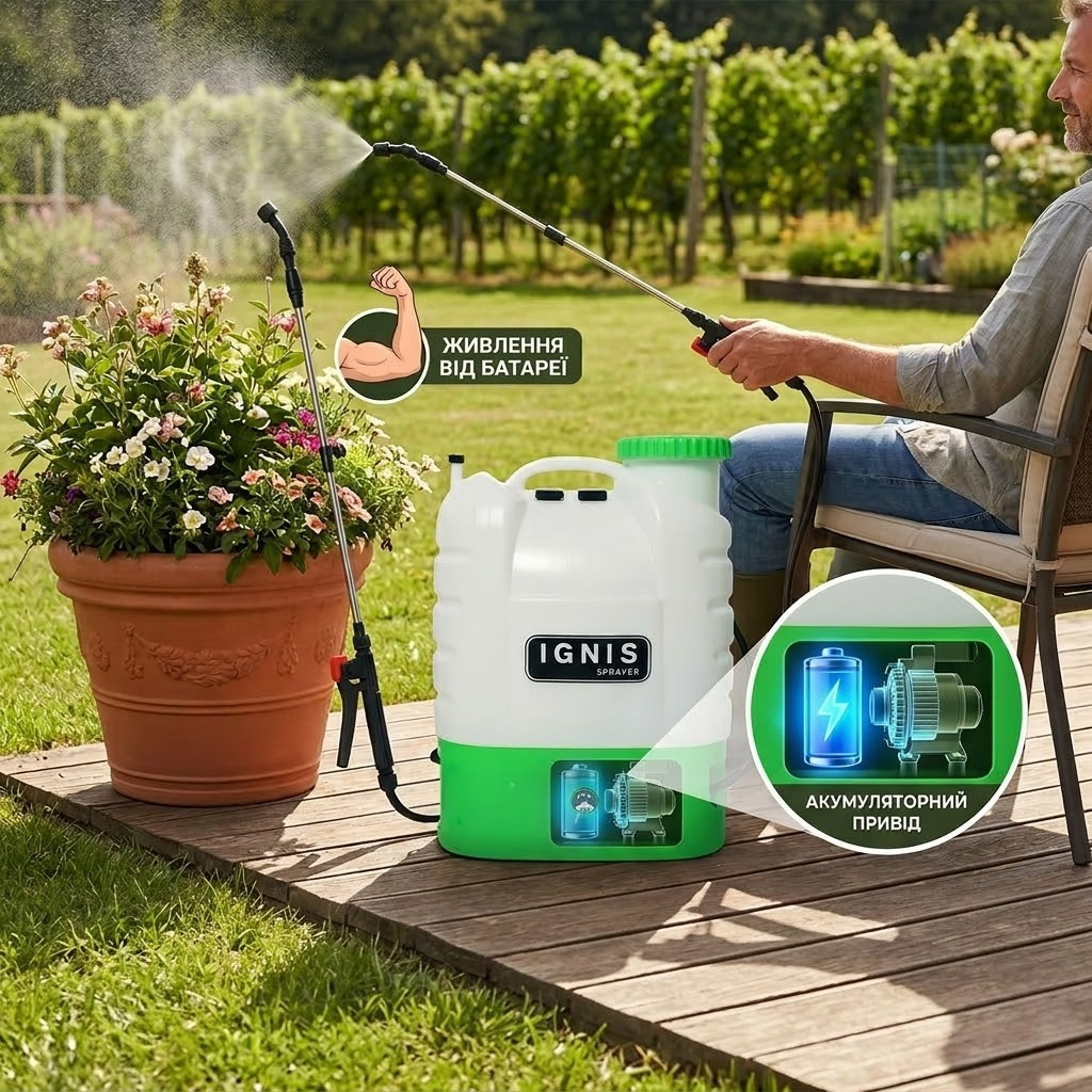 Раніше рука відвалювалася качати важіль. З IGNIS просто тиснеш кнопку — і жодної втоми. Обприскав сад утричі швидше