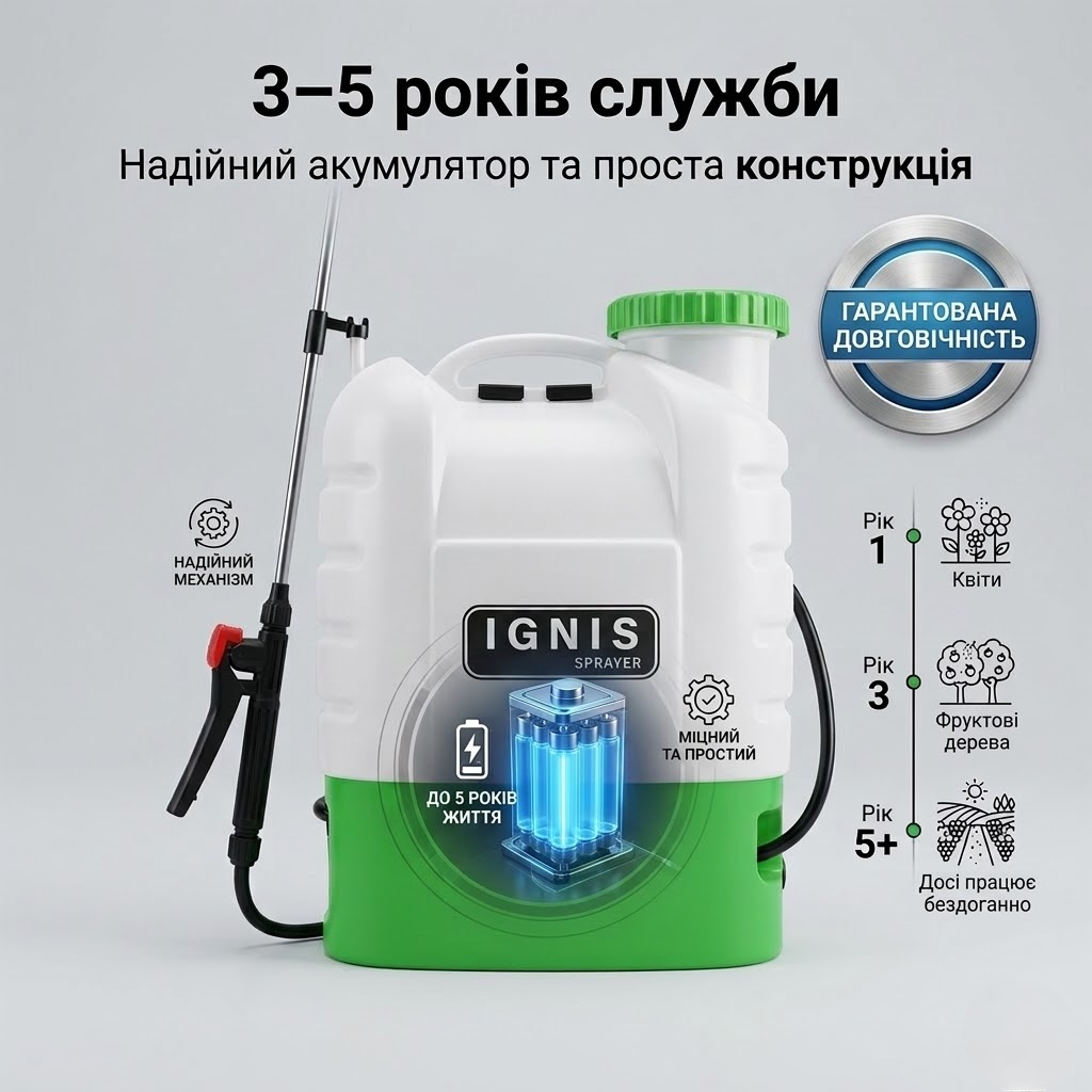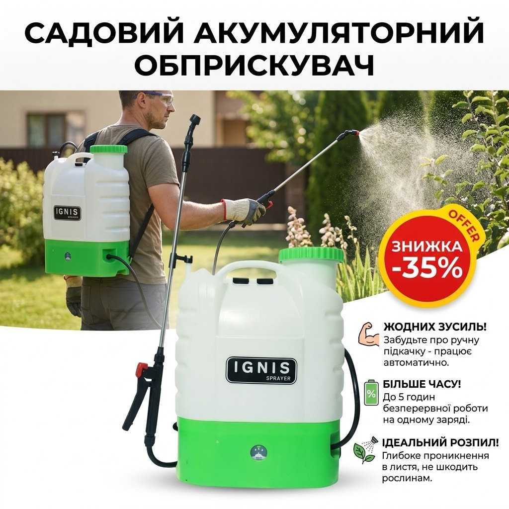 Раніше рука відвалювалася качати важіль. З IGNIS просто тиснеш кнопку — і жодної втоми. Обприскав сад утричі швидше